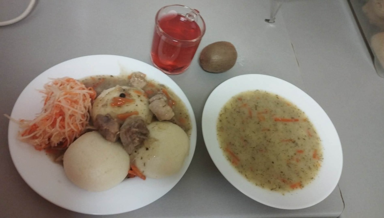 GRAMATURA: Zupa ogórkowa z ziemniakami 350ml ( MLEKO, S02, GLUTEN, GORYCZYCA , JAJA, ORZECHY , PSZENICA, SOJA, ŻYTO, SELER ), Gulasz wieprzowy z warzywami 200g ( MLEKO, S02, GLUTEN, GORYCZYCA , JAJA, ORZECHY AR, SOJA, ŻYTO, SELER, SEZAM ), Surówka z selera i ananasa 150g (MLEKO, GLUTEN, JAJA), Kompot owocowy 250ml (MLEKO, S02, GLUTEN, GORYCZYCA , JAJA, ORZECHY , SOJA, SELER ), Kluski na parze 3szt (MLEKO, GLUTEN, JAJA), Podwieczorek: Kiwi 1szt